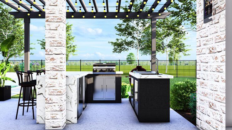 Modern designs often combine grilling with additional features such as sinks, mini fridges, or serving counters.